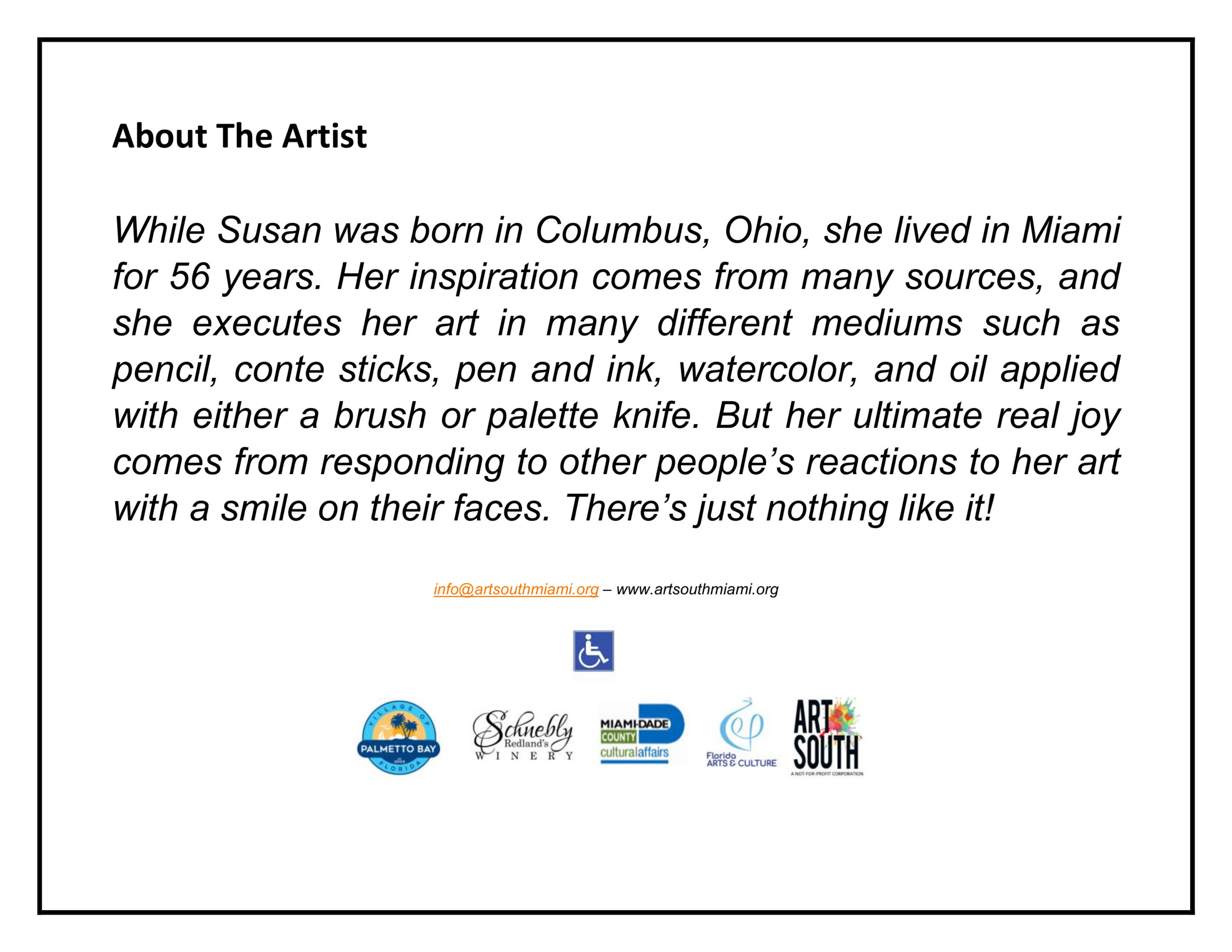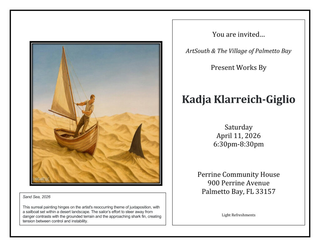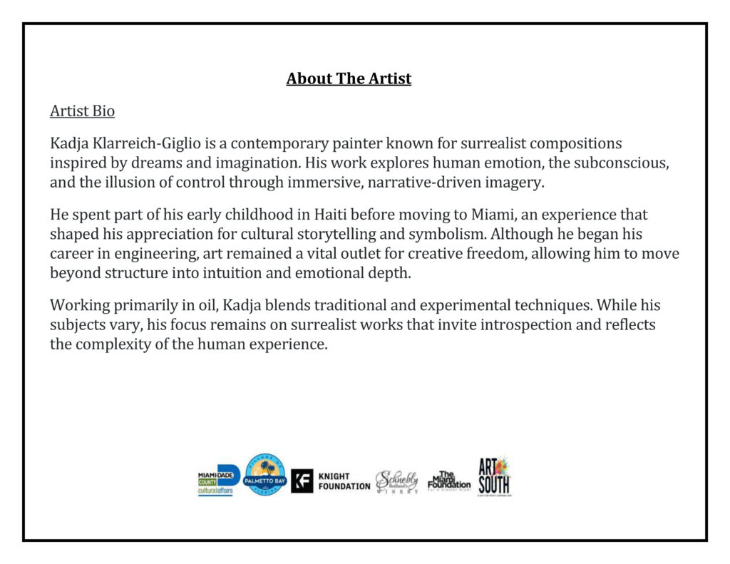piece without a clear vision of the final result, allowing her intuition to guide the process and materialize unconscious visions. In recent years, her work has focused on exploring the influence of media on daily life and its role in shaping societal norms, particularly regarding women’s roles and expectations. In 2023, Carolina founded the Biscayne Art Collective in Miami, a community of visual artists who live and create around Biscayne Bay, a stunning natural environment. The collective fosters collaboration, ideas exchange, and mutual support among its members. The artist also shares her expertise and personal philosophy through creativity workshops at her Miami studio.